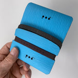 This wallet has a shorter front for your cards and a back tall enough to conceal your cash. Fold your money once and not twice as many minimalist wallets require. A rubber card valet folder helps secure three groups of cards.