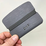 The Arch™ • Epi Charcoal 3CF wallet embodies simplicity and flexibility. The exterior wrap is laser cut from premium-quality vegetable-tanned Italian leather with the distinctive Epi texture. You will love how quality leather looks better with age. One metallic red and two gloss black carbon fiber dividers are included and offer different looks if you rearrange the dividers.