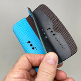 The Arch™ wallet embodies simplicity and flexibility. The exterior wrap and divider are laser cut from premium-quality vegetable-tanned Italian leather. The Epi wave texture on the divider is perpendicular to the direction of the texture on the wrap. Gloss black and matte black carbon fiber dividers are included and offer different looks if you rearrange the dividers.