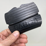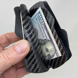 Cash|Cards - Rubber This Pod Wallet™ features a wrap in Rubber. The laser-cut words give a quick read on just how organized you are! Inside, a rubber card valet folder helps to secure three groups of cards. Two gloss black carbon fiber dividers help to organize your cash and receipts. An industrial-grade rubber ring aligns the elements together and stays in place. Add the convenient V-Notch™ Passport Folder insert for your next travel adventure. It simply snaps in using the same rubber ring. We provide an extra rubber ring, not that you’ll need it.