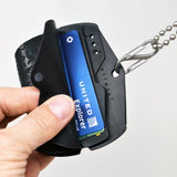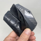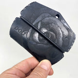 The Biker™ model Pod Wallet™ has eyelets so it can hang from a lanyard or security chain. This version is constructed entirely with rubber, so it is virtually indestructible! This special edition includes a laser etched skull design on one side and a rose on the other. Inside, a rubber card valet folder helps to secure three groups of cards. Two gloss black ultra-thin carbon fiber dividers conceal cash or personal items while adding hi-tech design detail.
