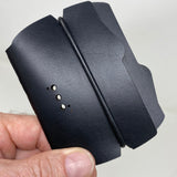 The Geode™ Pod Wallet™ features a wrap and one divider in high-quality vegetable-tanned Italian leather. The design has a shorter front for your cards and a back tall enough to conceal your cash. Fold your cash once and not twice as many minimalist wallets require. Inside, a rubber card valet folder helps to secure three groups of cards. An ultra-thin gloss black carbon fiber divider provides a high-tech look while partitioning. Bring it in front of the leather divider if you prefer this look. An industrial-grade rubber ring aligns the elements together and stays in place. Add the convenient V-Notch™ Passport Folder insert for your next travel adventure. It simply snaps in using the same rubber ring. We provide an extra rubber ring, not that you’ll need it.